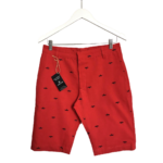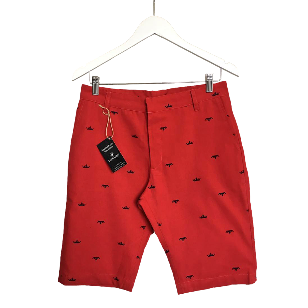 Bermuda estampada com coroas, confeccionada em algodão sarjado com bolsos faca frontais e bolsos embutidos nas costas.