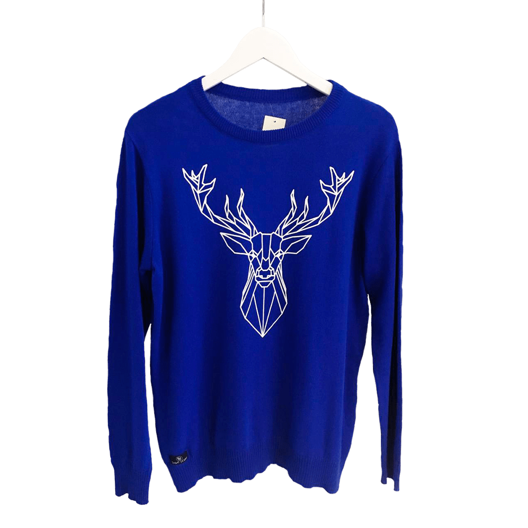 Blusa em tricot estampada em silk, manga longa, gola careca e barra e punho com corte a fio.