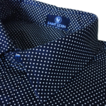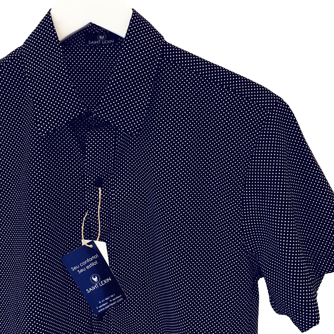 Camisa estampa de poá, manga curta, modelagem slim.