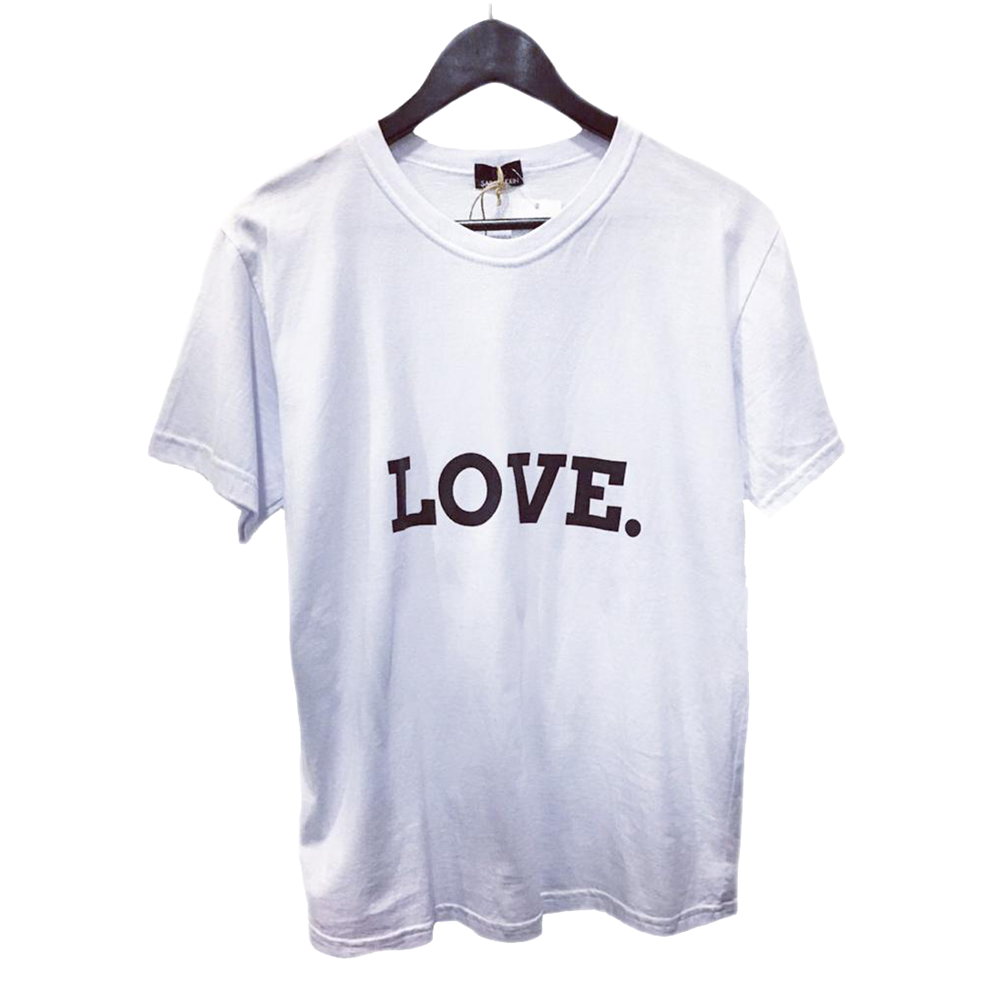 T-shirt confeccionada em puro algodão estampado em listras e estampa escrita em silk, manga curta e gola careca.