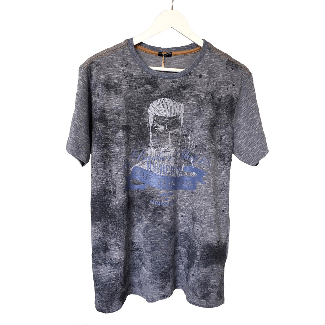 T-shirt confeccionada em algodão e estampa em silk, manga curta e gola careca.