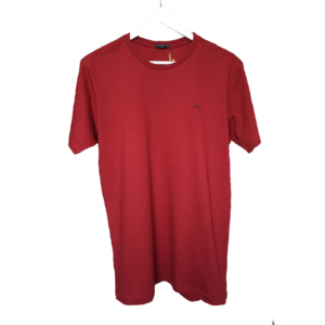 T-shirt confeccionada em algodão e estampa em silk, manga curta e gola careca.